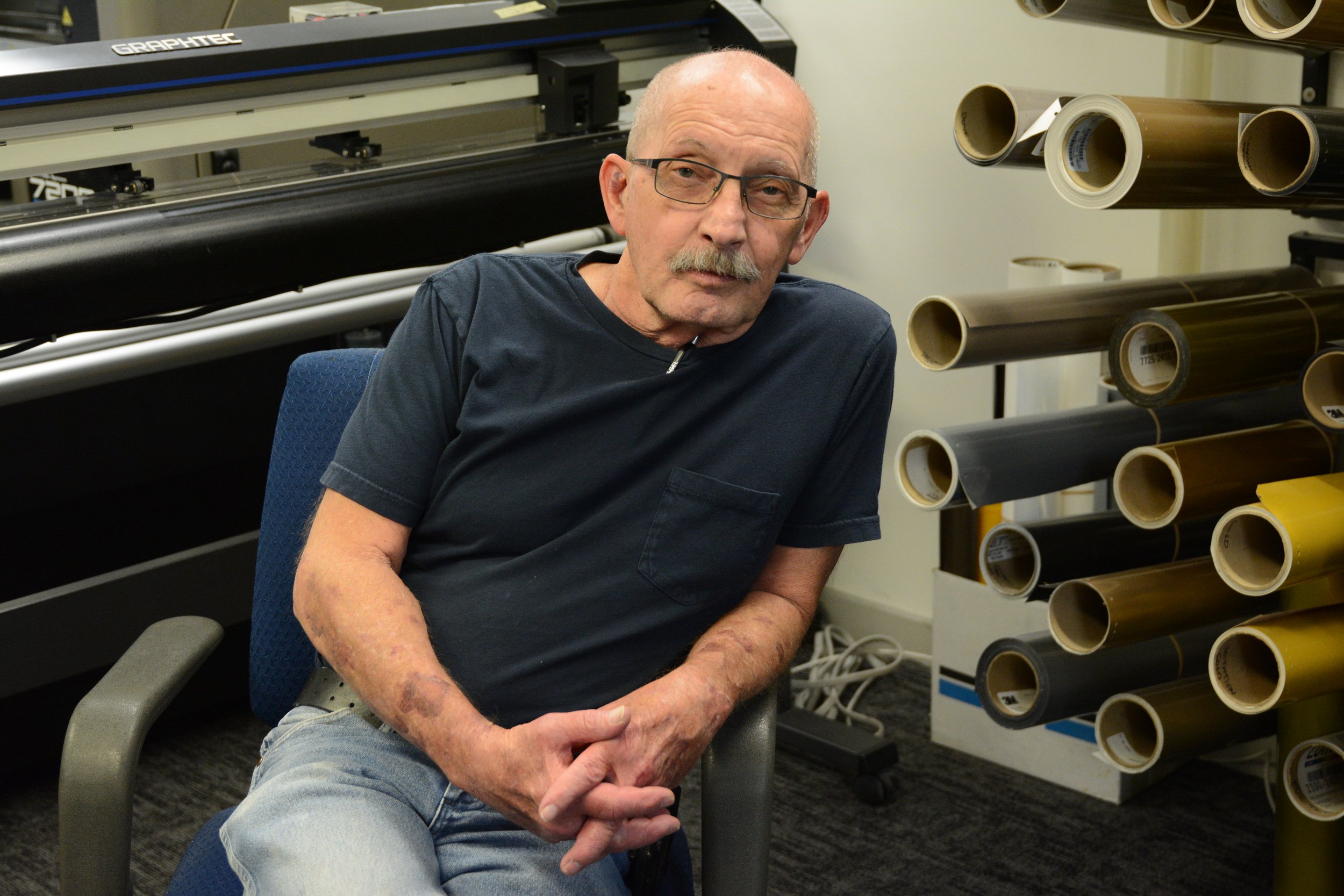 On any given day, you’ll find Bill setting up files, processing vinyl and prepping screen films and managing fine details that are crucial to each job’s success. While the projects may seem similar on the surface, he sees value in consistency and enjoys solving problems early so they don’t become bigger issues later. “I enjoy correcting errors before they work themselves downstream,” he said — a nod to the care and experience that comes from decades in the industry.