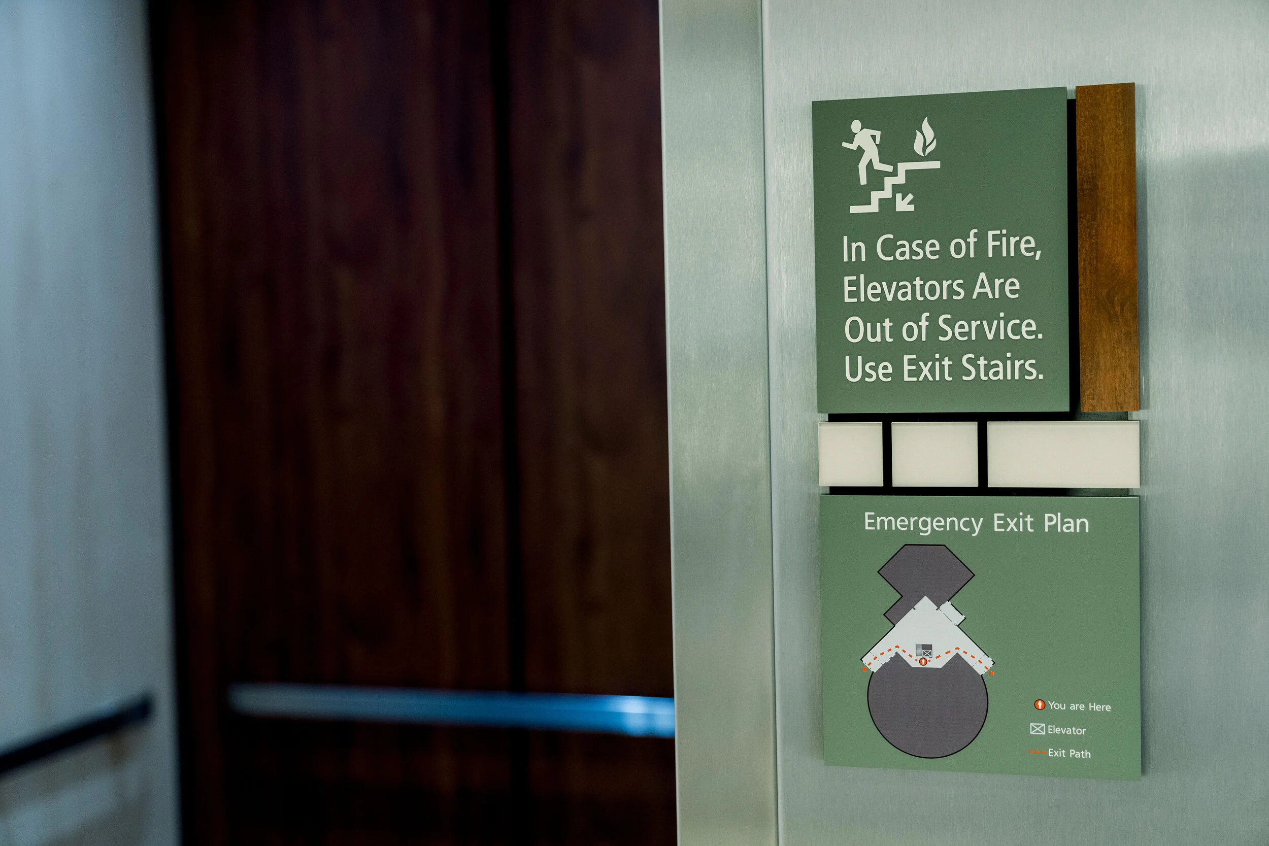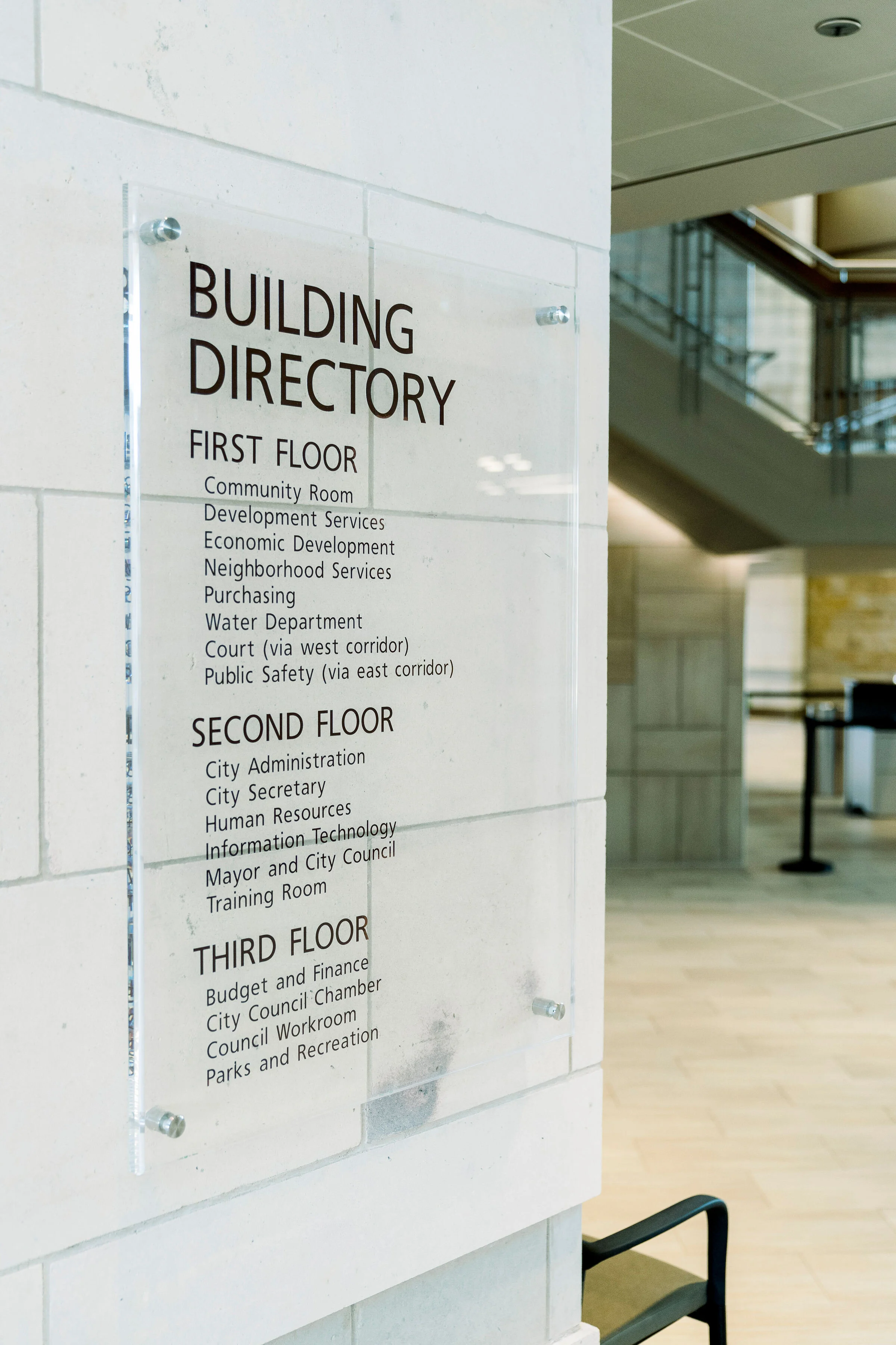 The ADA signage matches the city’s signage standards but was customized to the colors and materials used within the building. The police and fire departments’ badges were routed and hand-carved to match the smaller metal badges they proudly wear. The logo of North Richland Hills can be found throughout the property as cast bronze plaques in various diameters.
